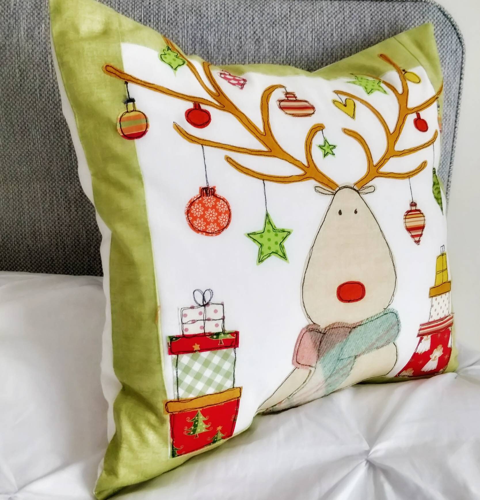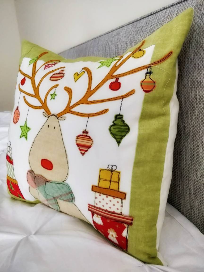 Printed Sewing Pattern Reindeer Applique Cushion Cover Sew Etsy